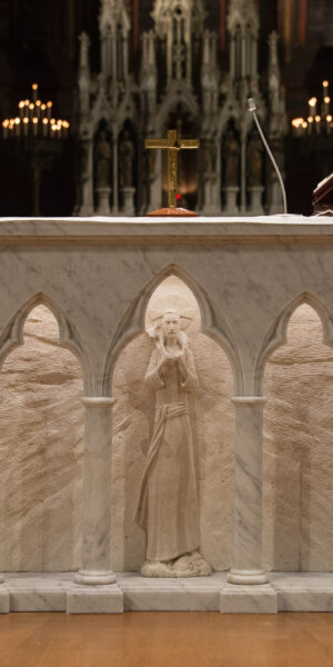 Chaque choix — qu’il s’agisse des formes, des essences de bois ou des finitions — est pensé pour servir la foi. Le travail du bois, du textile ou encore de la pierre et du verre, se fait dans une grande exigence de justesse, en dialogue avec le lieu et sa spiritualité.